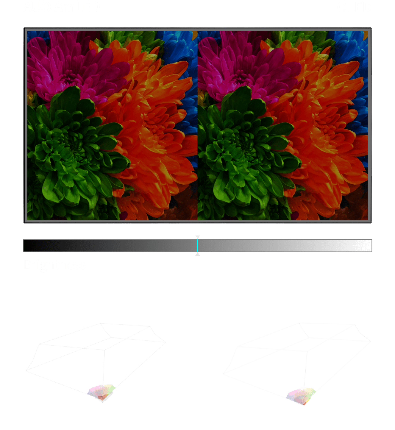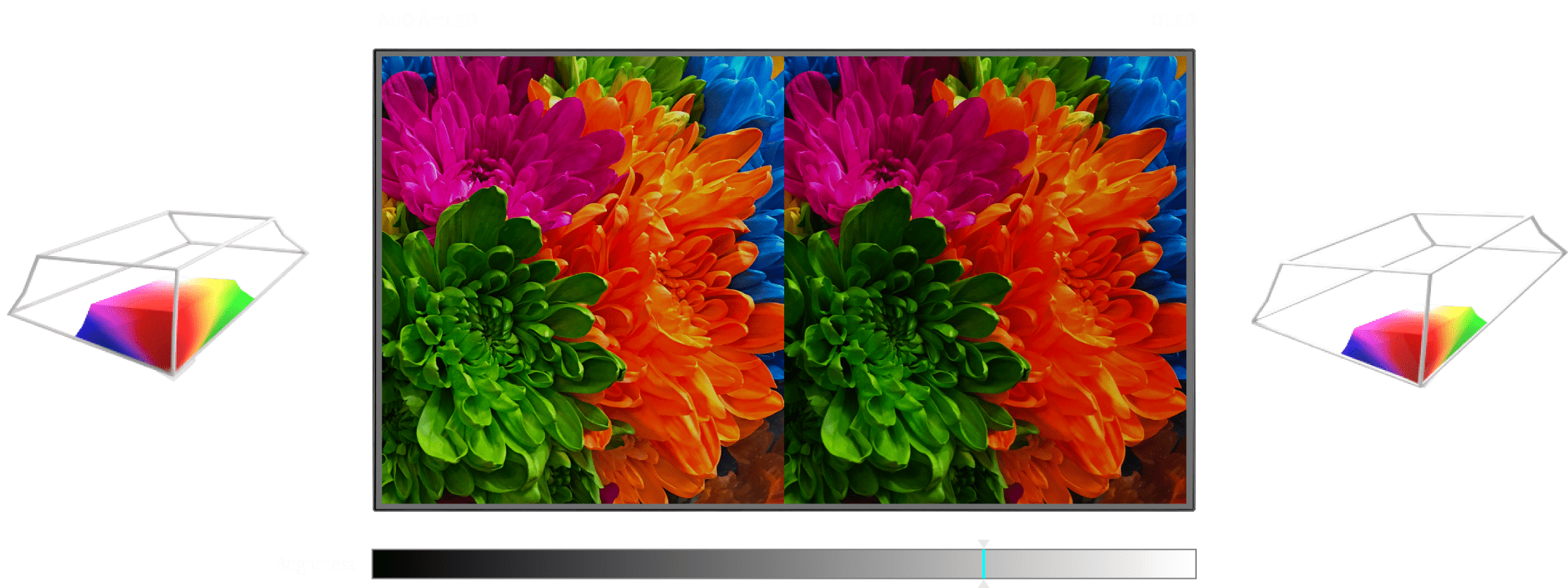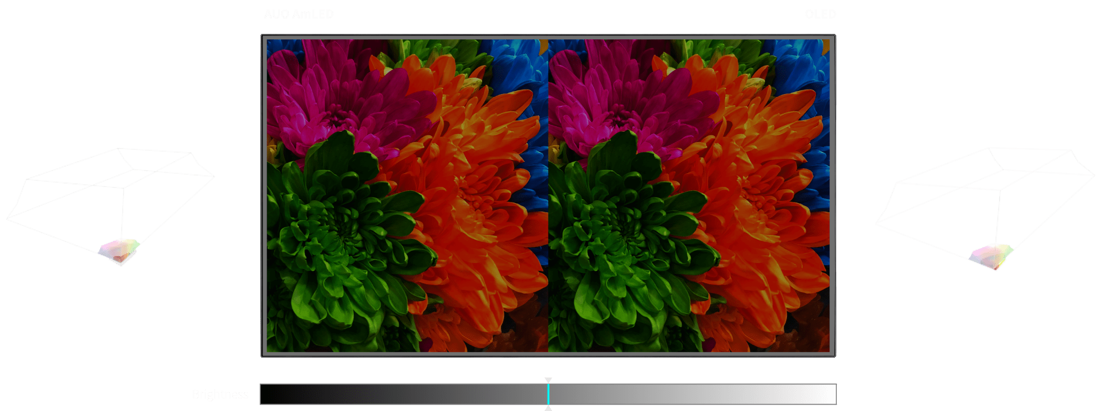 除 DCI-P3 100% 廣色域,AmLED 在顯著
