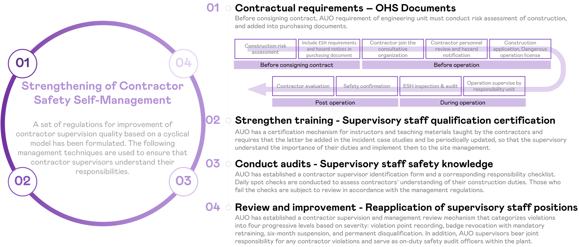 An e-Contractor management system platform has been established by HTH to expand contractor participation in the coordination organization. The initiatives are aimed at improving safety self-management at work sites.