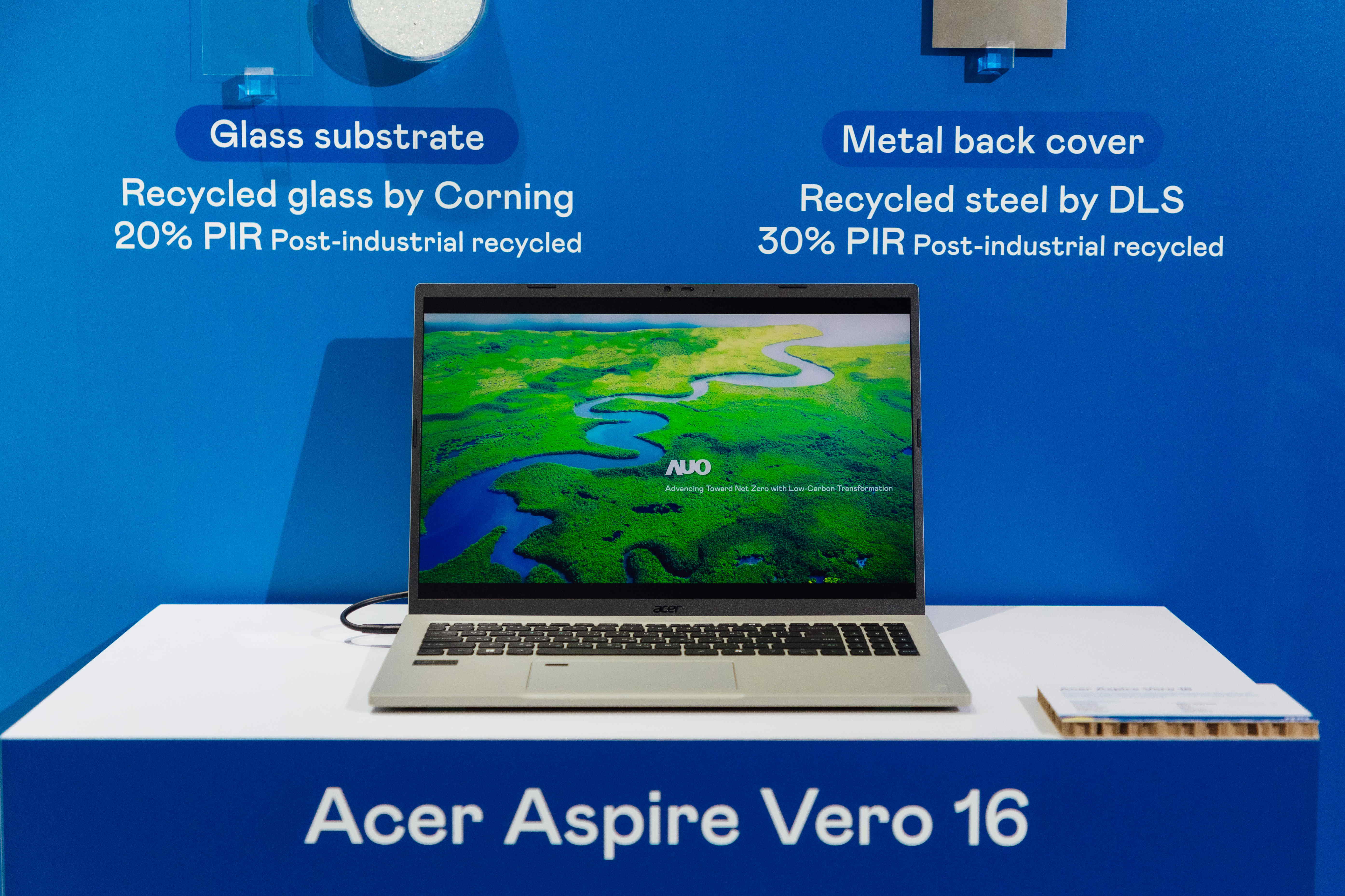 The world's first notebook computer adopted a panel produced by HTH with 100% green electricity. In addition to PCR, it also uses post-industrial recycled materials (PIR), such as recycled glass and metal, to reduce its impact on the environment.